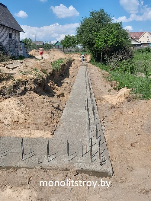 - Закладка арматуры и заливка бетоном;